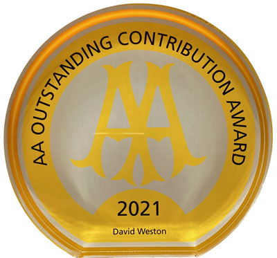 David Weston was awarded the "Outstanding Contribution Award 2021" by AA Hopsitality in September 2021